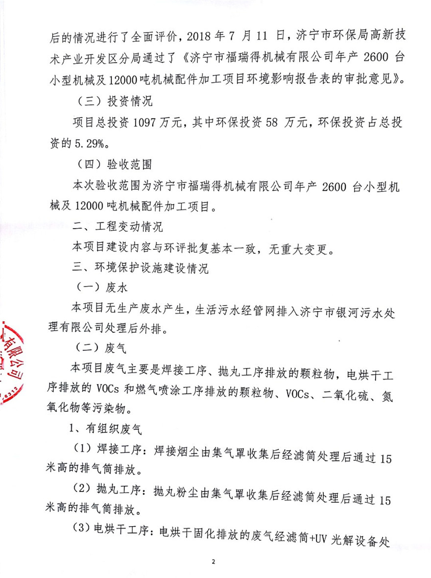 年产2600台小型机械及12000吨机械配件加工项目(废气、废水)竣