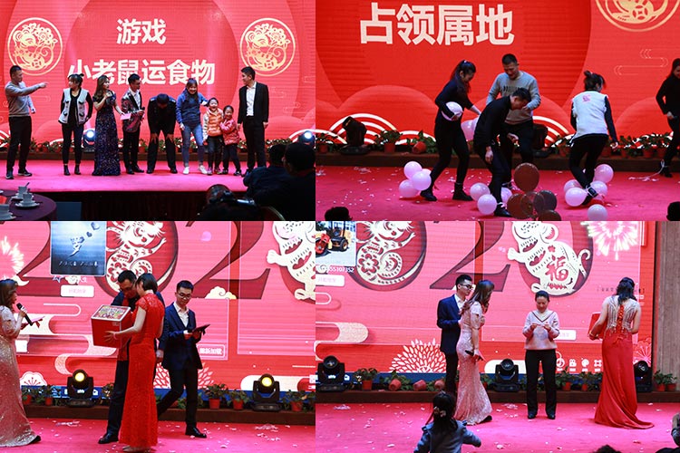 四、游戏、抽取奖品环节展示。年会当然少不了游戏、抽取大奖环节了,精心安排的互动游戏,大大地调动了员工们的热情,台下一片欢声笑语,昔日的汗水都化为杯中的美酒,大家举杯共饮。抽取大奖是激动人心的,看着拿大奖的同事心中充满了羡慕。