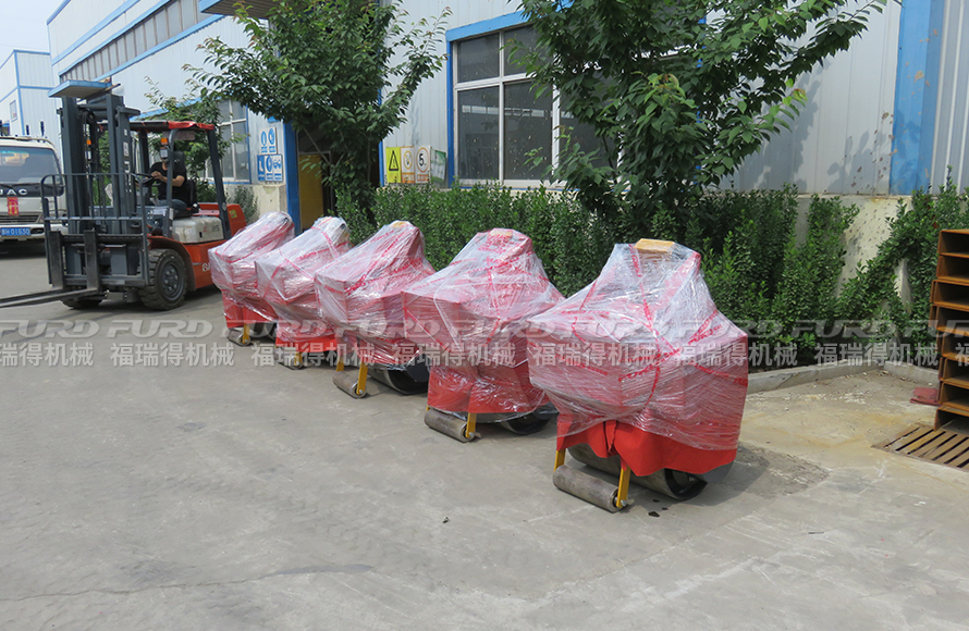 6月25日 福瑞得5台小单轮压路机打包发往宁波,福瑞得机械研发生产的手扶单钢轮压路机作业半径小,可在狭小的区域内工作,转向方便。主要用于沟渠基础,道路,体育场地的压实整平,也可用于压实沥青表面的作业。采用品牌动力发动机,性能优越,启动容易,使用寿命长。