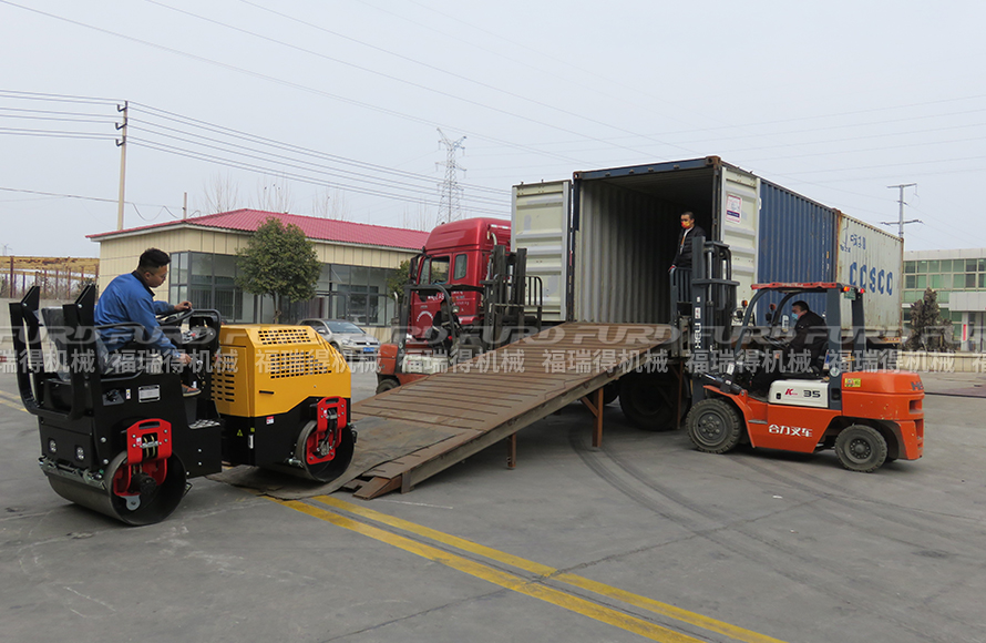 2月12日,福瑞得机械13台双钢轮压路机装车出口阿根廷