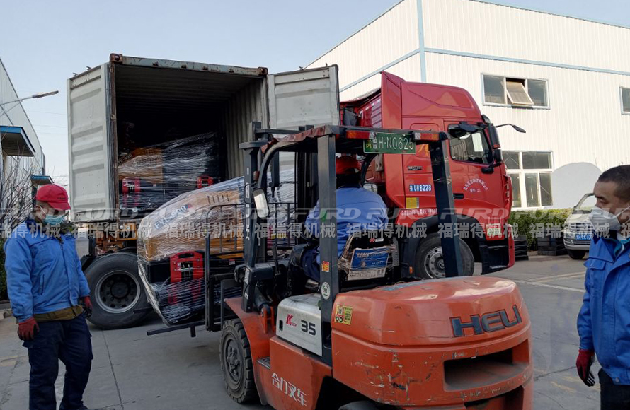 近年来福瑞得机械通过加大国内外营销布局,在国内市场不断巩固的同时,大力突破外贸出口业务。在全球经济形势仍然不容乐观的情况下,福瑞得机械在保证产品质量的基础上,加大生产力度,按时交机、发运,完成了该批订单的批量交付。