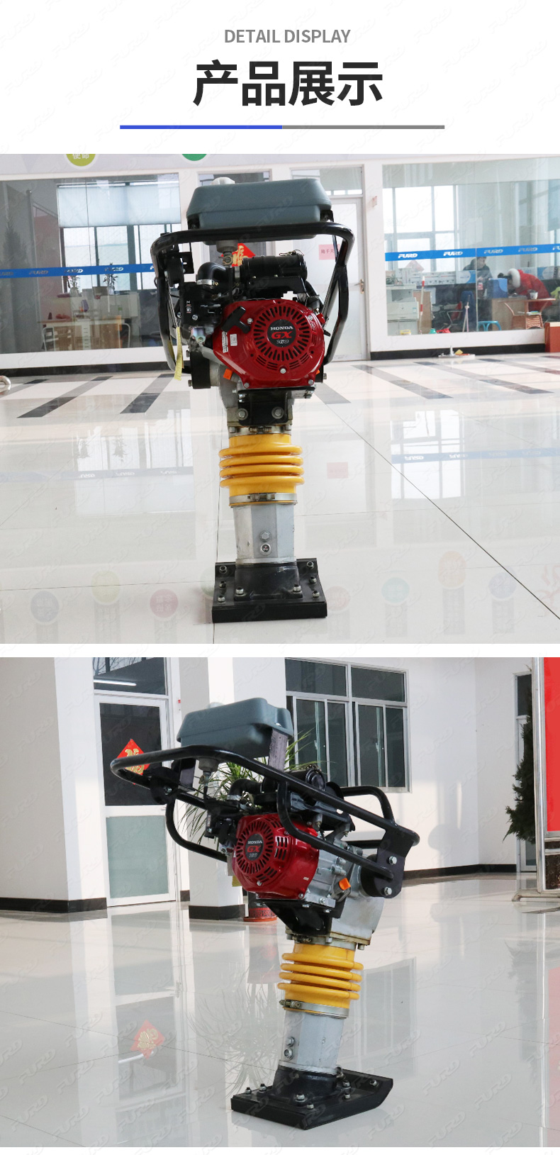 用于公路、市政、电信、煤气、供水、铁路等部门对工程基础和沟槽回填土的夯实。
