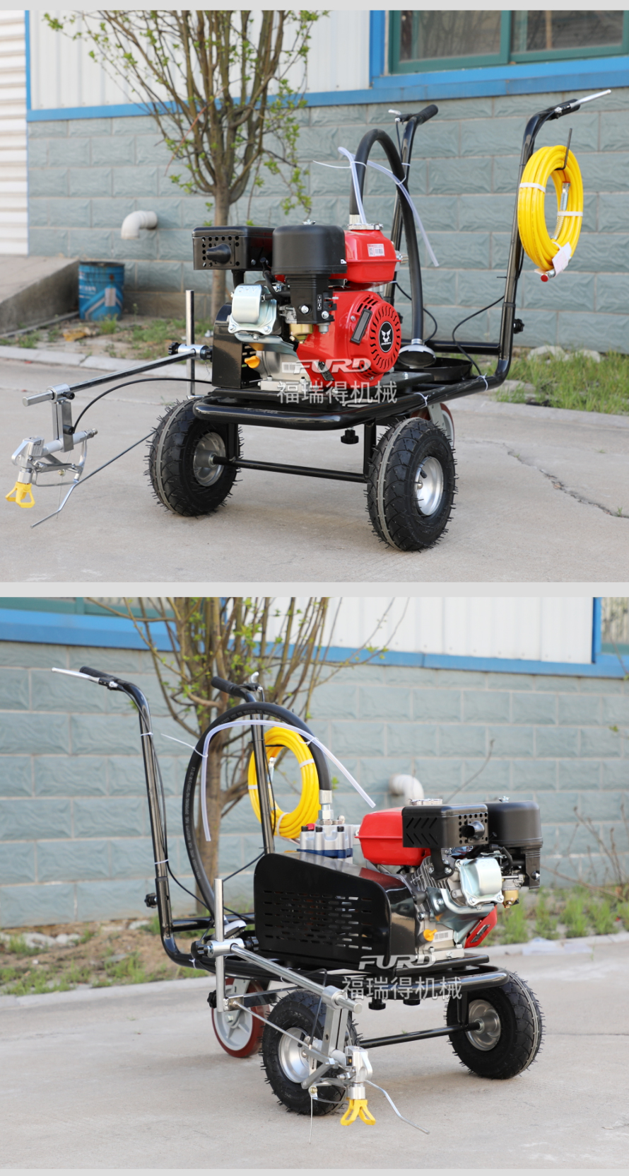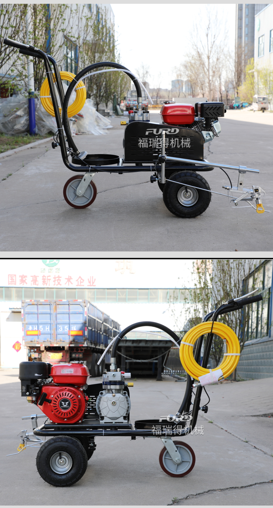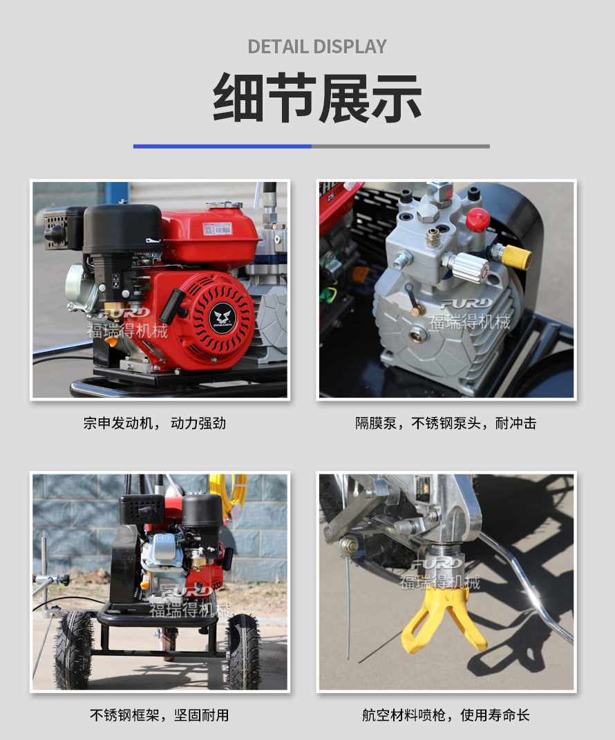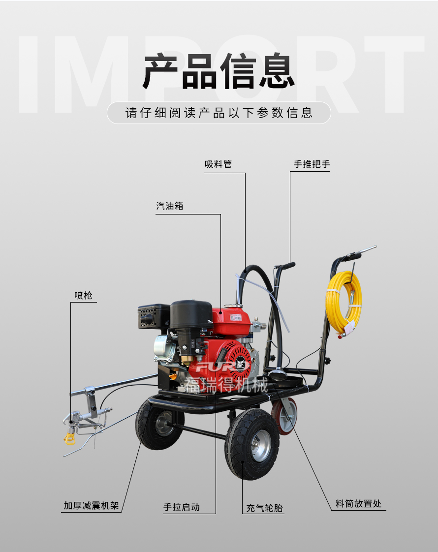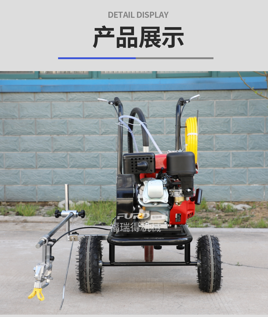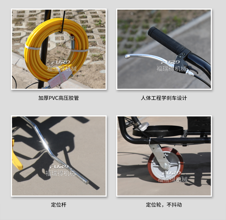 小型手推式道路划线机是一种在道路、停车场、广场和跑道等平整地面上划出不同约束、指引和警示等规则限制标志的路面施工机械。最常见的就是在马路上划斑马线,在路上划车库线、停车线等等应用于小型工程、短途施工,活动方便,灵活操作。