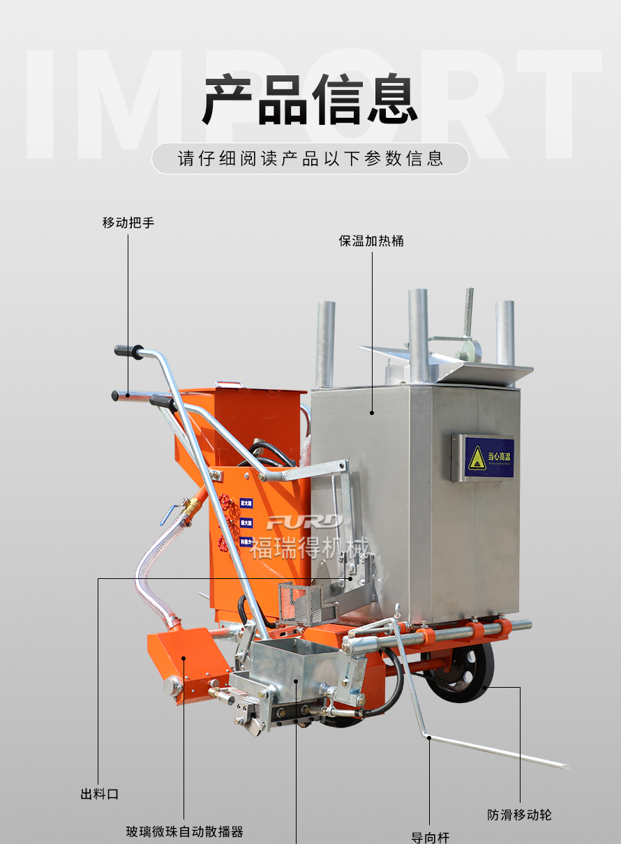 应用于道路、高速公路、停车场、广场和跑道的在平整地面上划出不同约速、指引和警示等规则限制标志的路面施工机械。