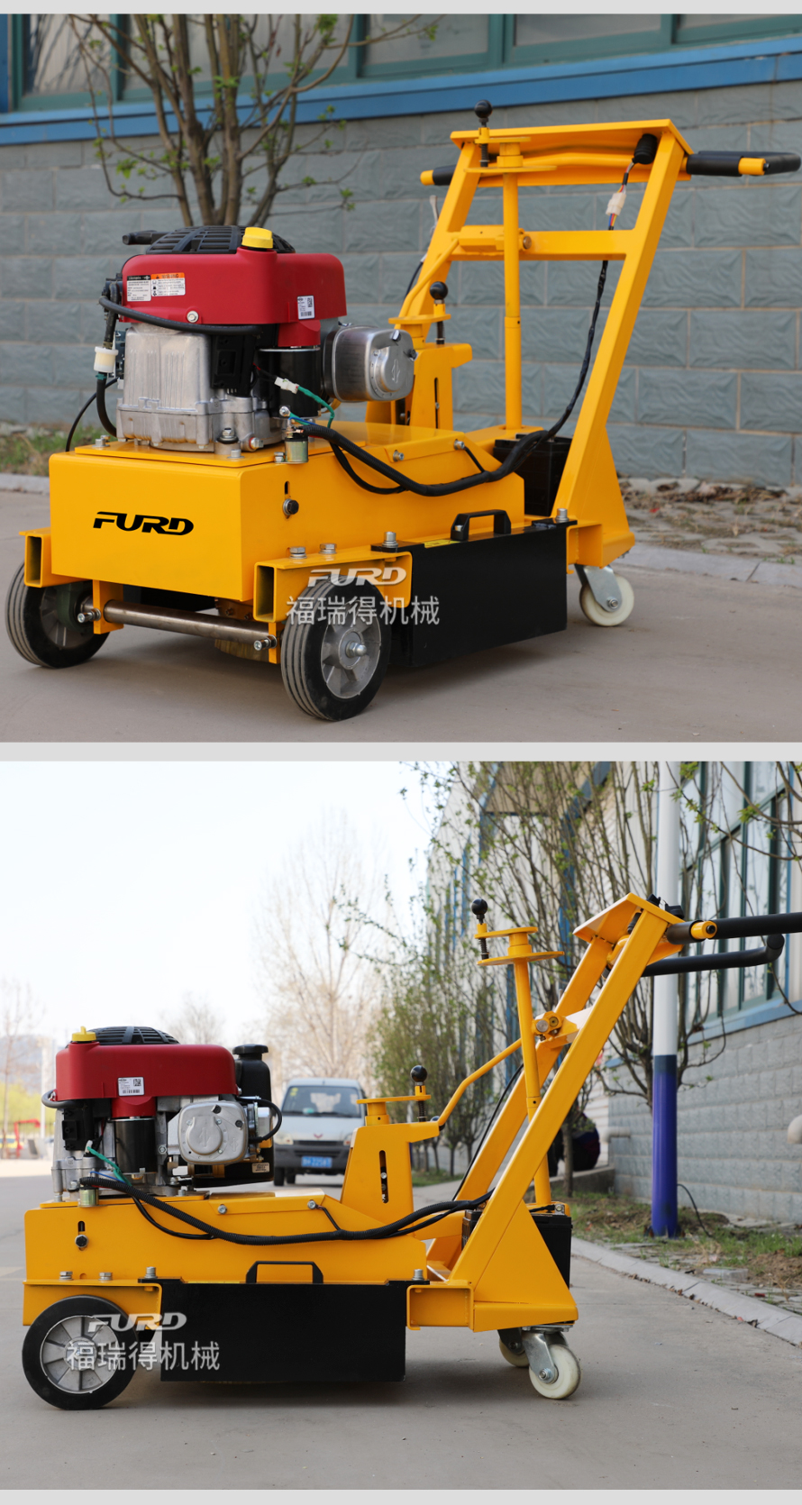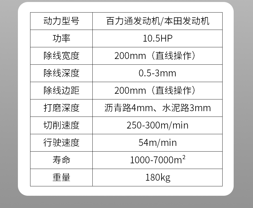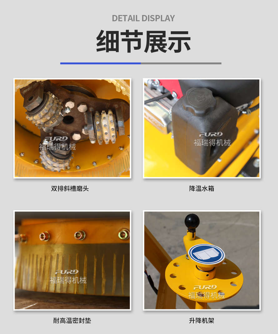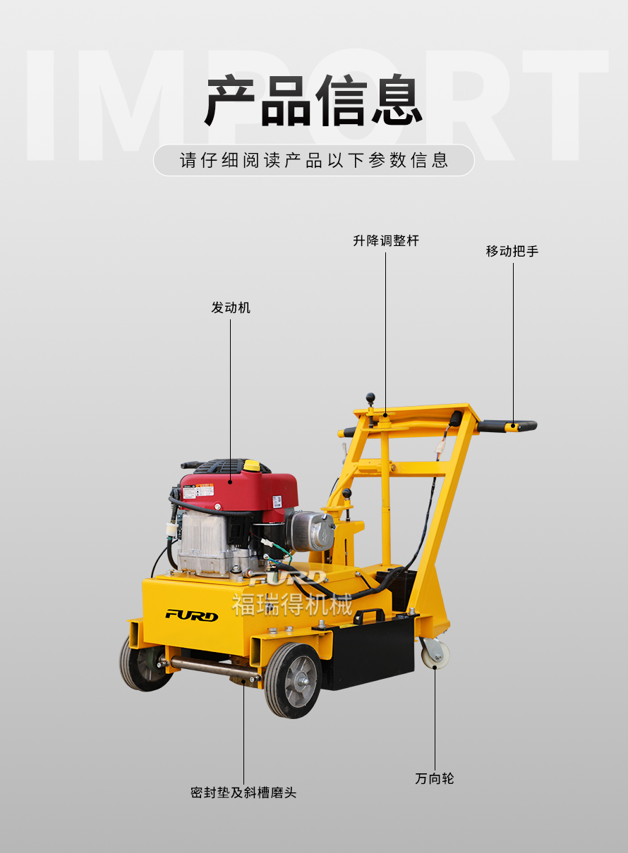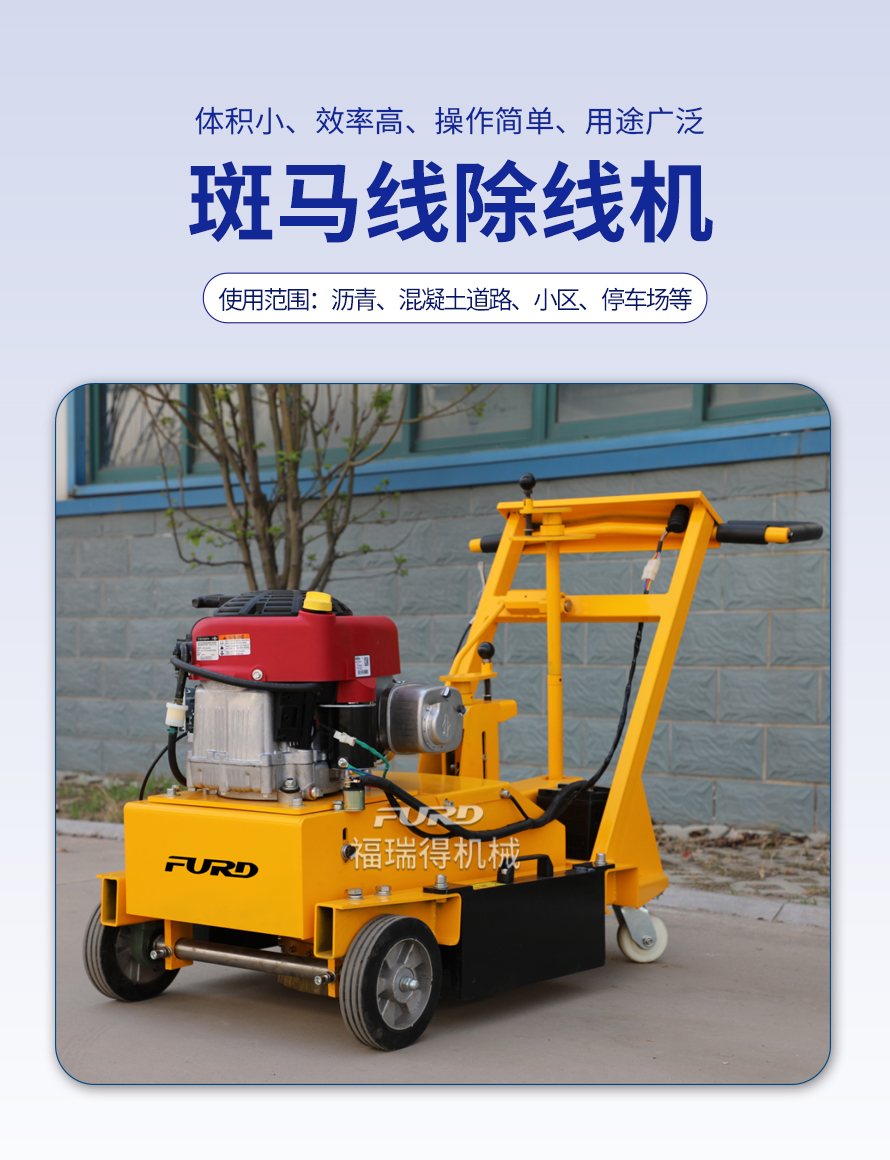 特点:体积小、重量轻、机动灵活、工作效率高、操作简单。 适应范围:主要用于沥青道路、混凝土道路、物业小区、机场、停车场等地的标线清除。