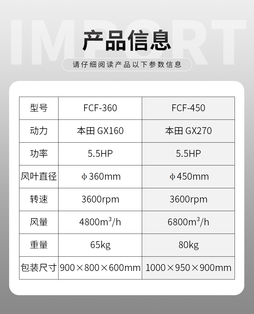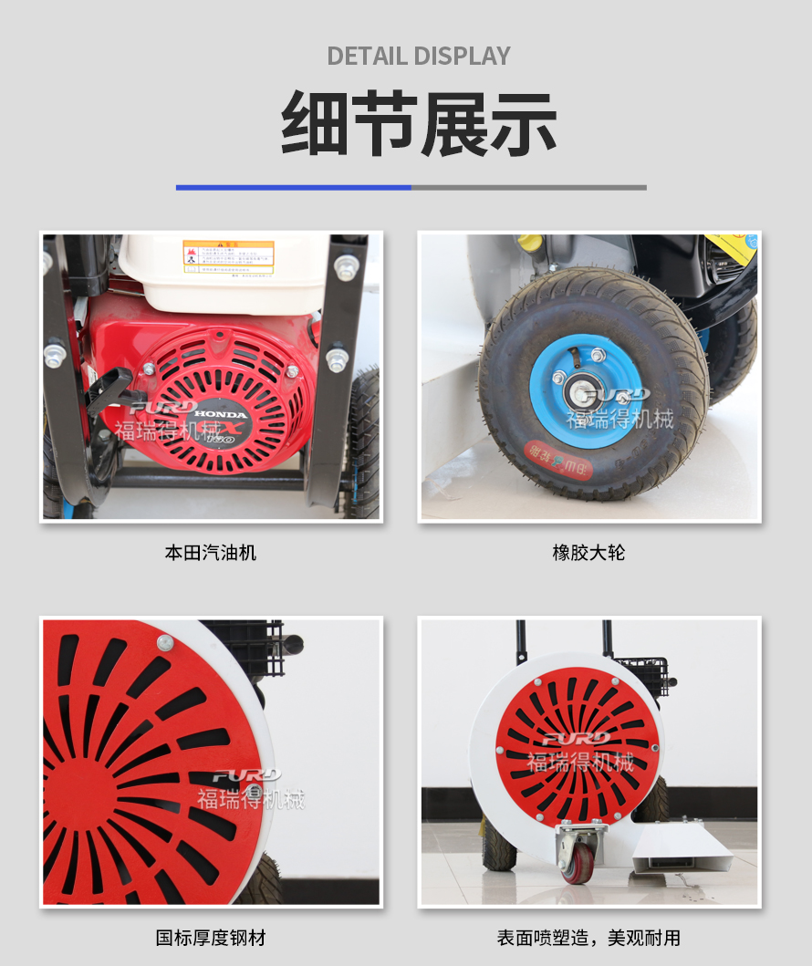 FCF-450路面吹风机采用本田汽油动力,性能稳定。风叶动力平衡性强,保证整体的稳定性。大风量,性能优越。