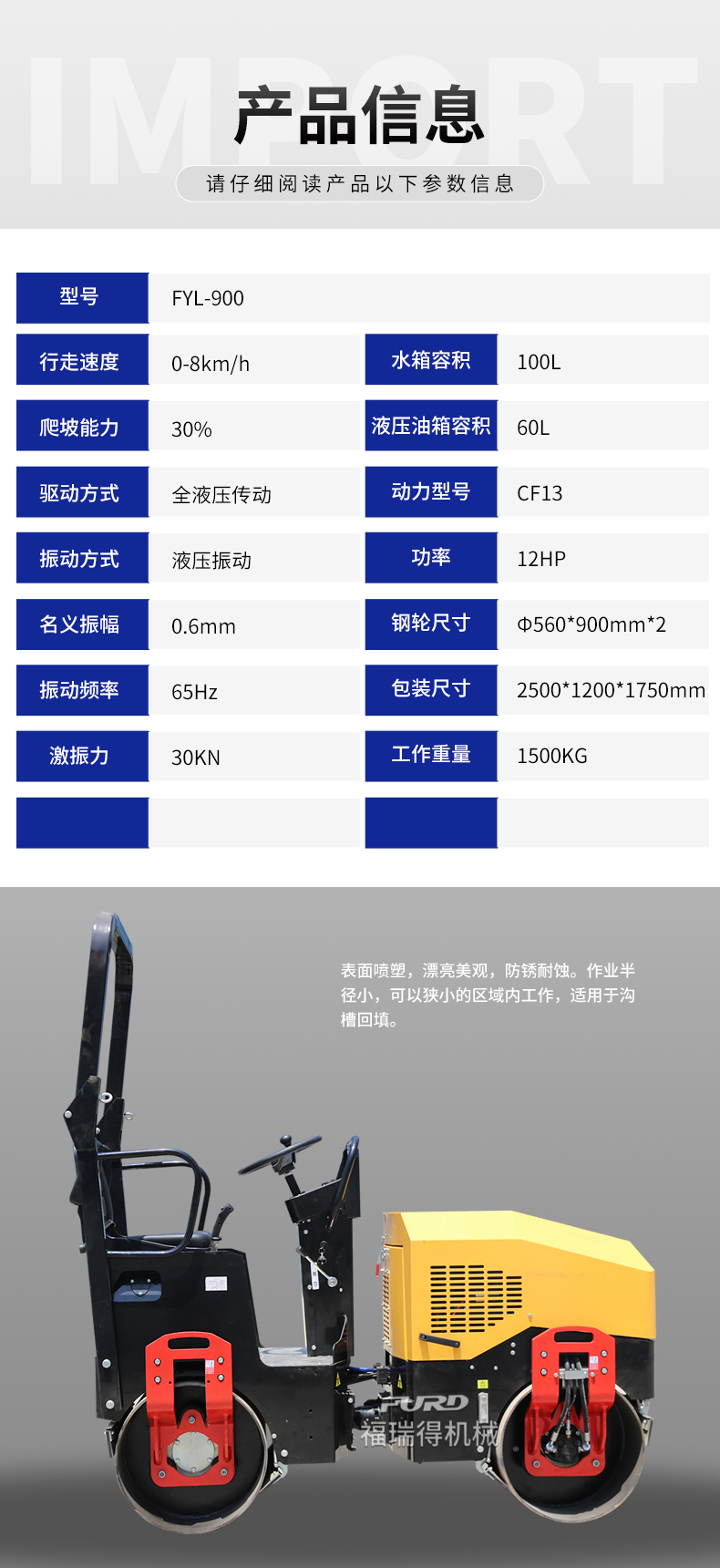 FYL-900CC  1.5吨全液压振动压路机