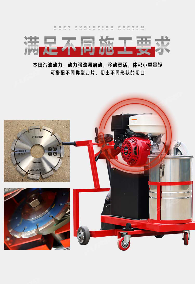 路面无尘开槽机是主要用于沥青路面修补裂缝开槽的机械,其集吸尘、开槽为一体,环保性.