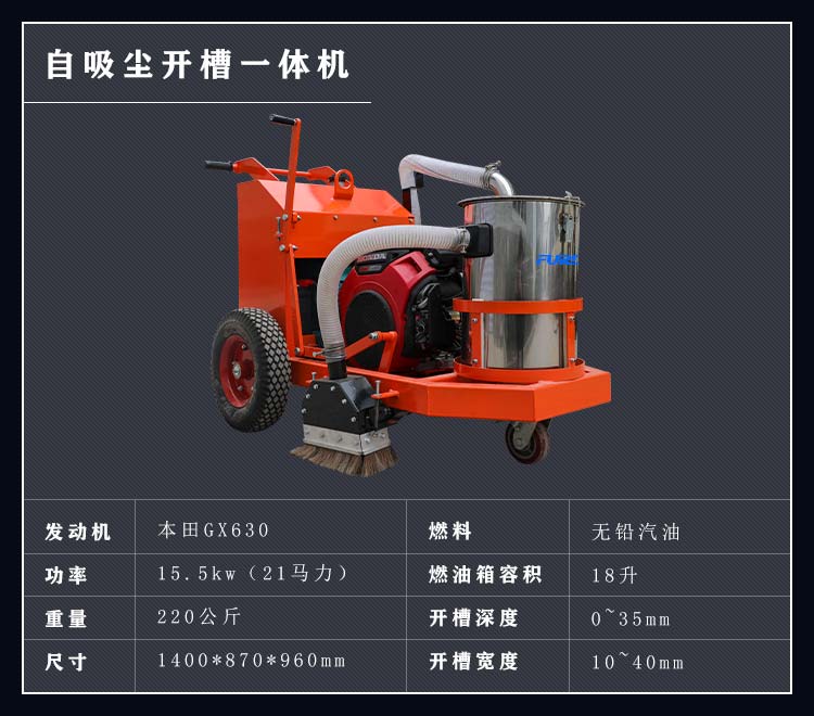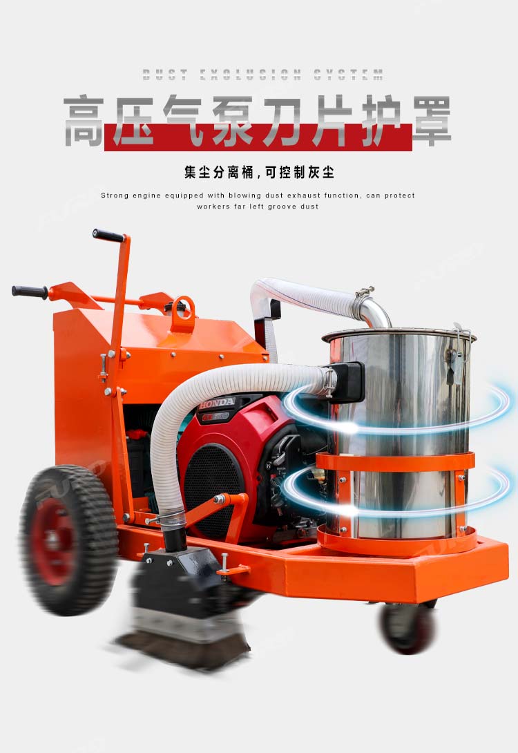 混凝土路面开槽吸尘一体机集开槽、吸尘为一体,解决了传统开槽机工作产生灰尘的问题