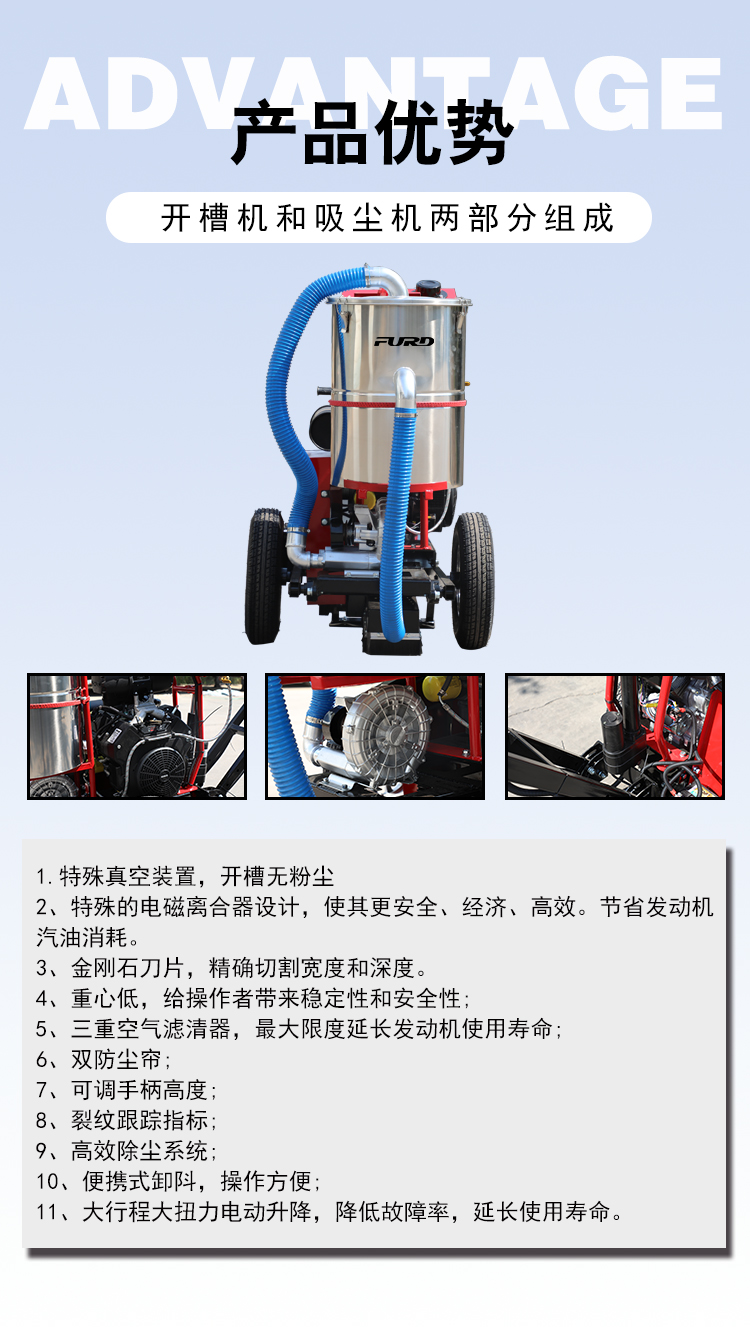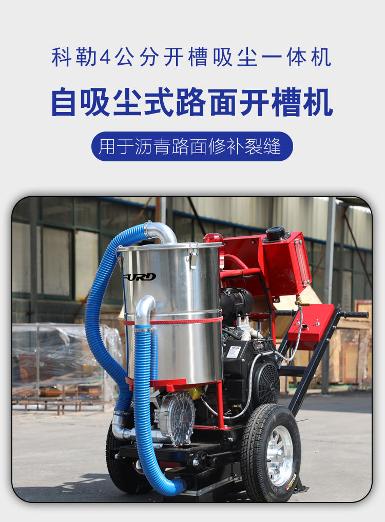 自吸尘式路面开槽机主要用于沥青路面修补裂缝开槽的机械,其集吸尘、开槽为一体,环保性好,工作效果高,是路面开槽施工不错的选择。