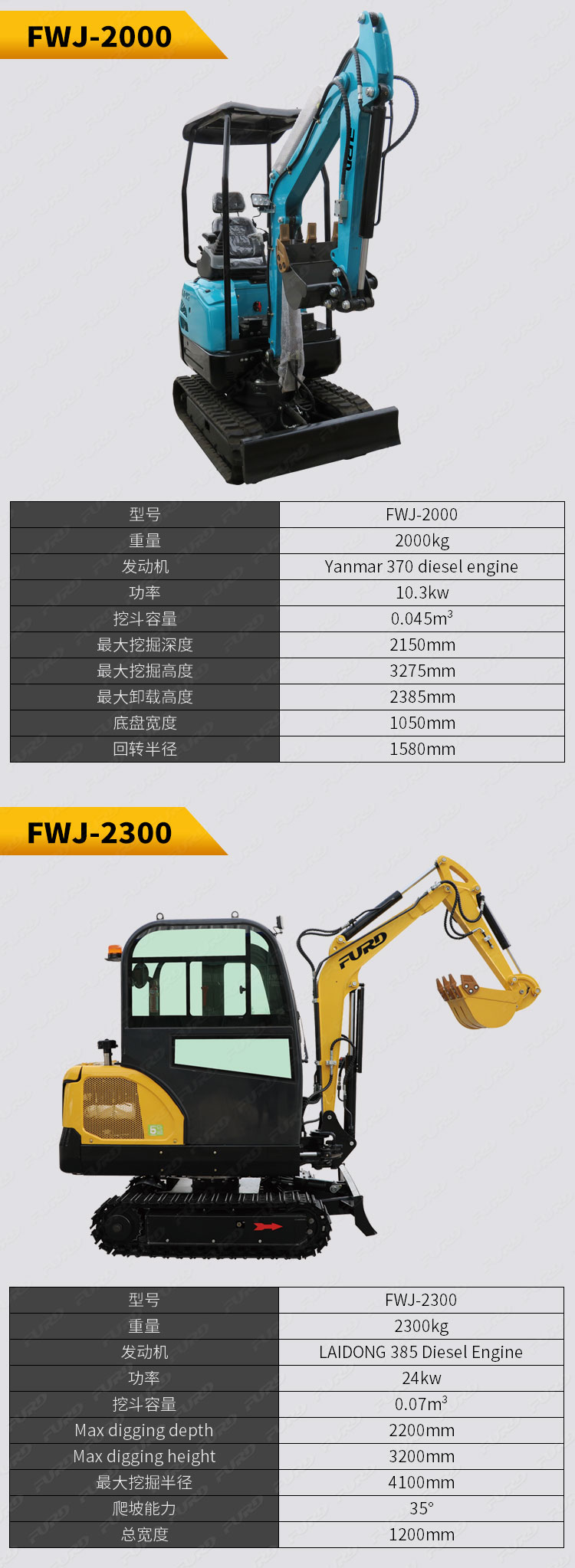 FWJ-2300  2.3吨小型挖掘机