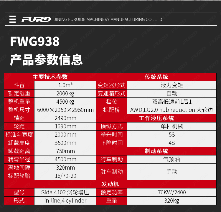FWG938四驱多功能装载机