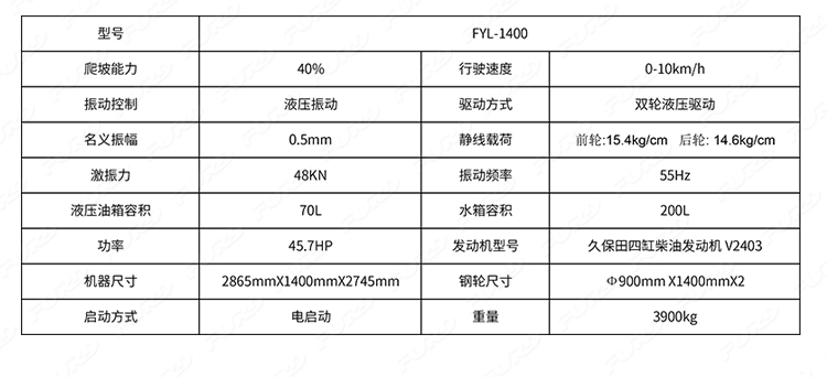 FYL-1400是4吨振动压路机,采用全液压传动,双鼓液压驱动,液压转向和液压振动。双鼓振动压路机