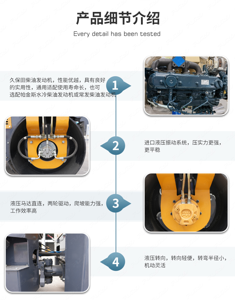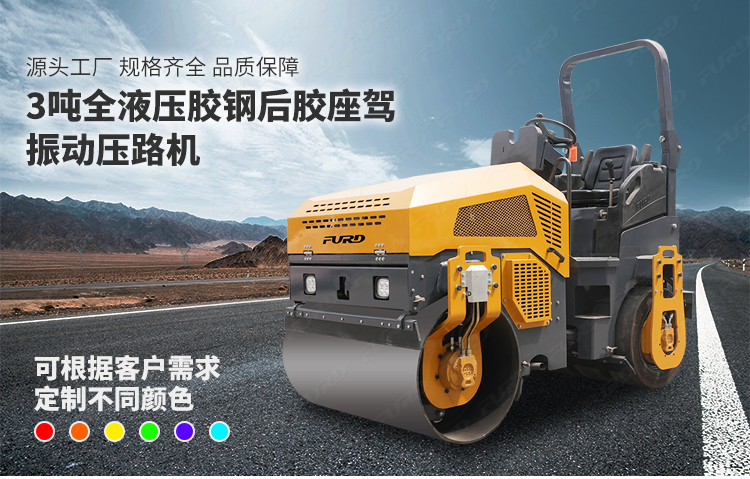 FYL-1200T为橡胶轮胎振动压路机,该压路机前有钢轮,后有橡胶轮,结合钢轮和轮胎压路机的优点,具有更高的工作效率。