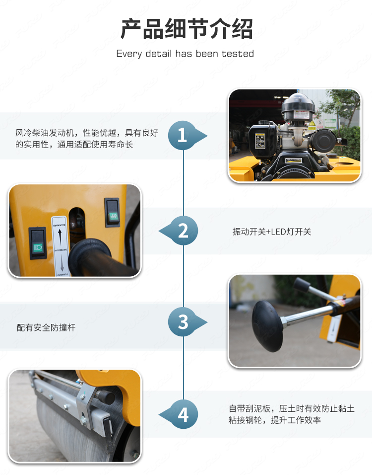 小型振动压路机,适用于各种道路、高速公路肩路、路边人行道、停车场、运动场、花园草坪的修补和养护。特别适用于管道、排水沟等狭窄区域的压实。